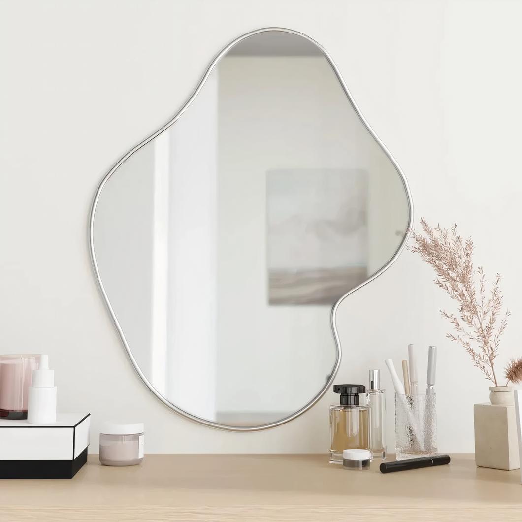 À tous ceux qui pensent qu'un miroir ne sert qu'à se regarder : détrompez-vous ! Placer un grand miroir dans une pièce permettra de la faire paraître visuellement plus grande et plus lumineuse. Un miroir apportera également de la profondeur et attirera votre regard plus loin. N'hésitez plus et optimiser votre espace intérieur grâce à ce superbe miroir asymétrique.