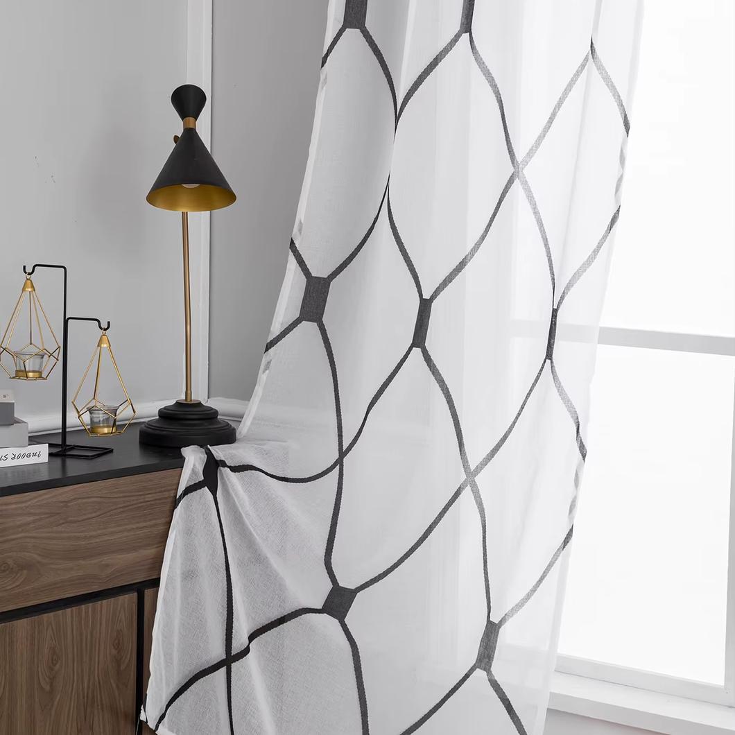 Idéal pour habiller vos fenêtres dans le salon, la chambre ou même la cuisine, ce rideau voilage blanc motif gris apportera une atmosphère chaleureuse et accueillante à votre espace de vie. Son motif géométrique gris ajoute une note subtile et sophistiquée à votre décoration, s'harmonisant facilement avec différents styles de mobilier et de couleurs.